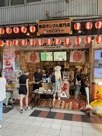 なんばグランド花月のすぐ近くにある「デザインポケット大阪本店」をのぞいてみました。たくさんの食品サンプルが所狭しと並んでおり、その精巧な作りに目を奪われます。マヨネーズ付たこ焼きや串カツなど、大阪らしいサンプルもあります。さらに大阪・関西万博のミャクミャクが描かれた本物そっくりのクッキー型キーホルダーとマグネットも売られています。ミャクミャクのキーホルダーとマグネットのお値段は万博開催年にちなんで税込2025円です。要予約になりますが、このお店では食品サンプルの製作体験も楽しめます。
