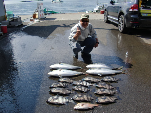 季節や仕掛け等により釣れる魚が違いますが、マダイ、石鯛、石垣鯛、黒鯛、ブダイ、平目、コチ、イナダ、カンパチ、宗田カツオ、カワハギなど色々です。