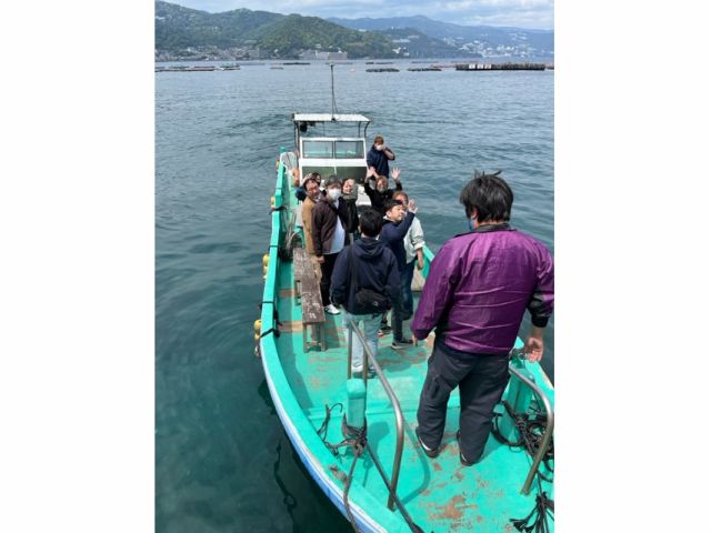 船に乗って海上のいけすに行き、タイ1尾とアジ1尾を釣り上げて頂きます。