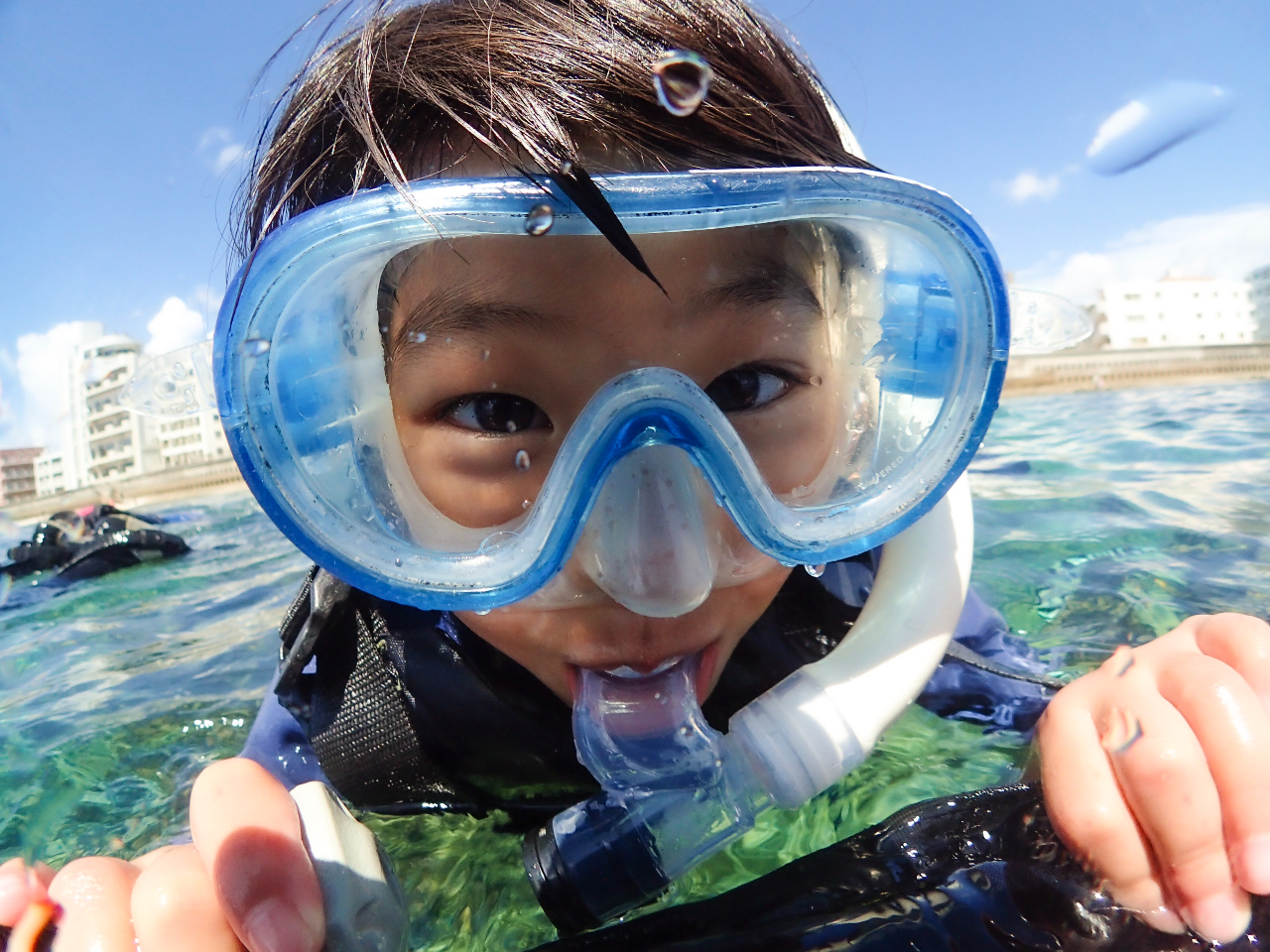シュノーケリングは、まず足の着く浅い場所からスタートします。