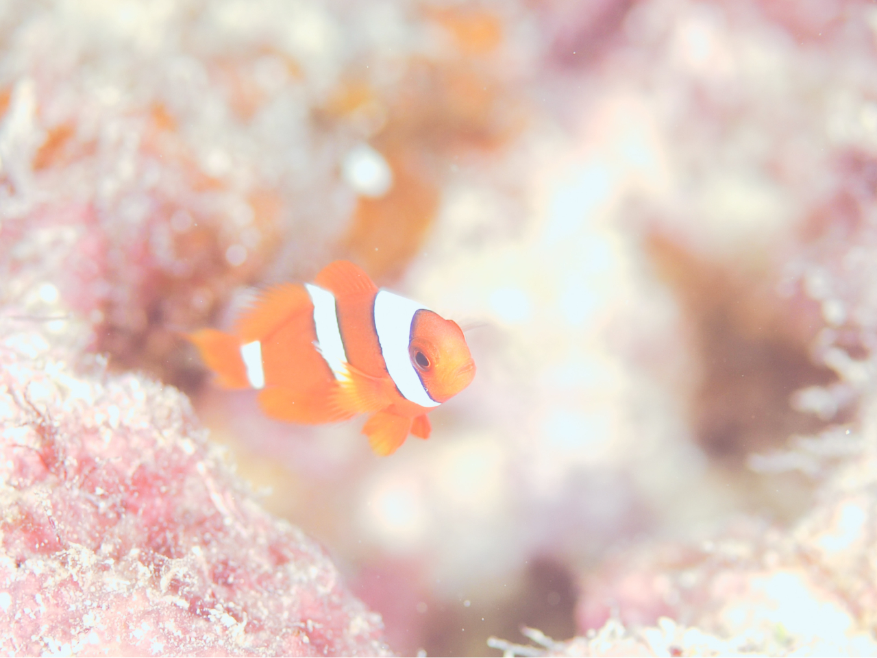 浅瀬では魚やソフトコーラルを間近に観察でき、場所によってはクマノミ(ニモ)が暮らすイソギンチャクを見ることもできます。