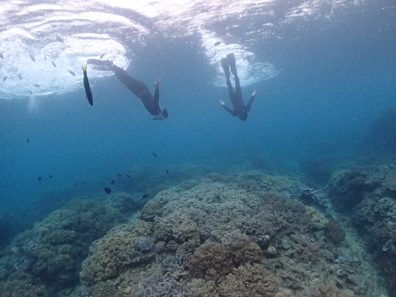 水深が変わっても無理に進むことはなく、水面から海の中を見渡しやすい範囲でご案内するため、初めての方や泳ぎが苦手な方でも安心して楽しめます。