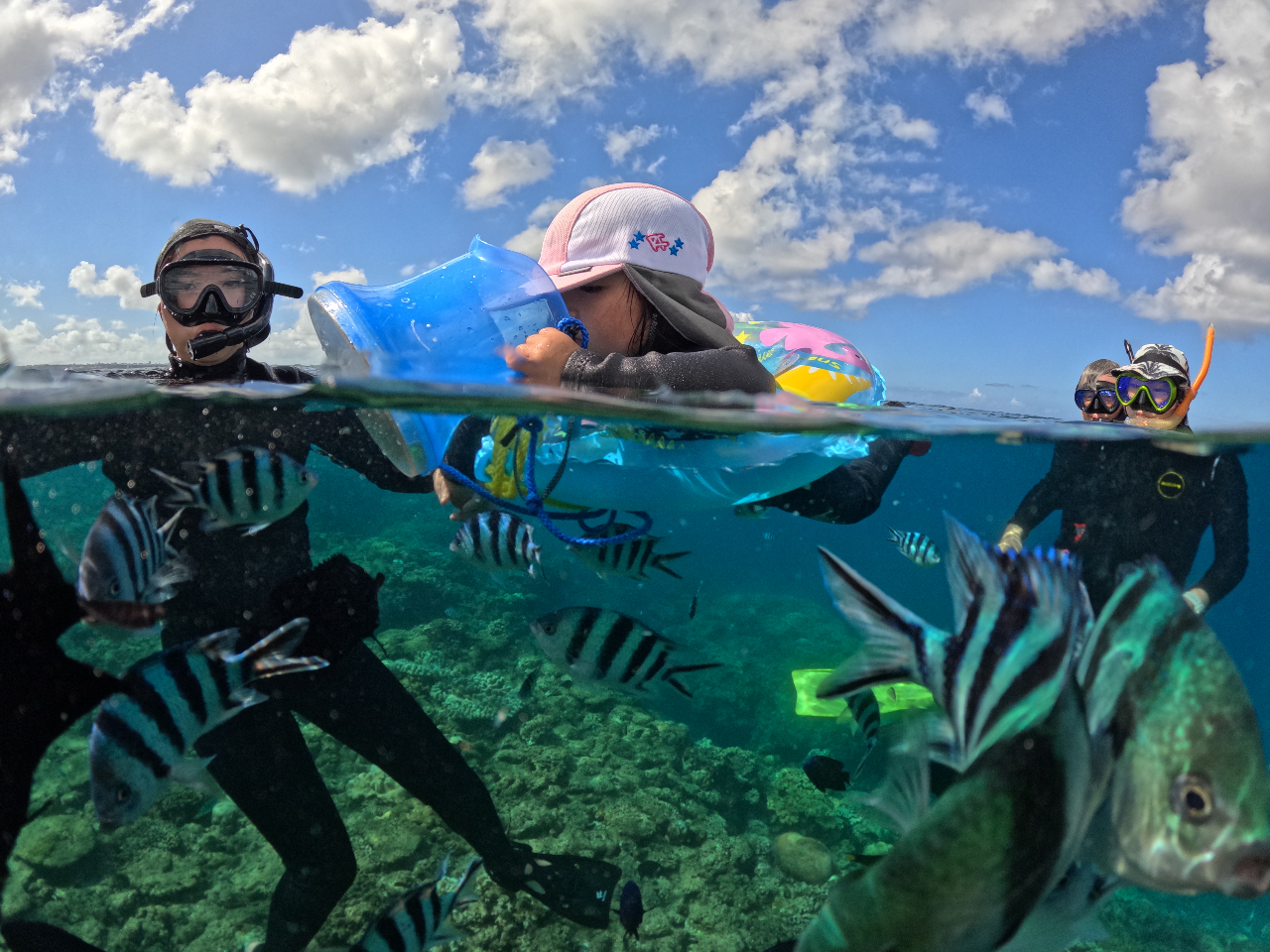 人が多い場所じゃなく、魚が近い海。北谷・砂辺の浅瀬で、餌付けとシュノーケリングを完全貸切で楽しむ体験。