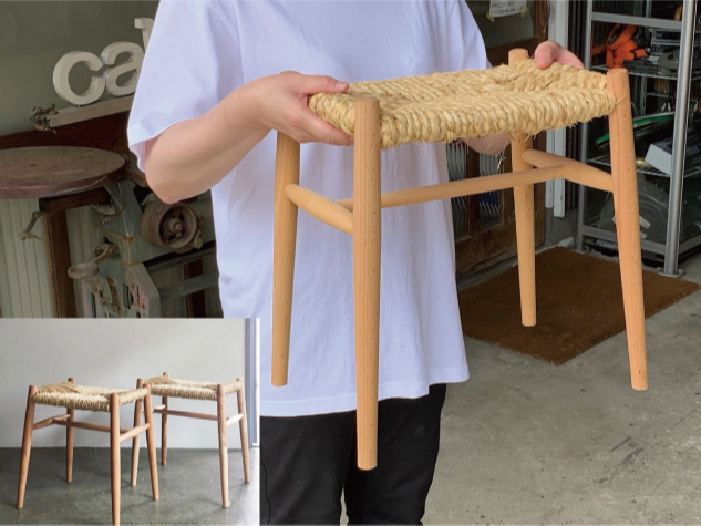 中級【天然無垢/天然木】『わら縄編み座面のスツール作り』ワークショップ 初心者も歓迎