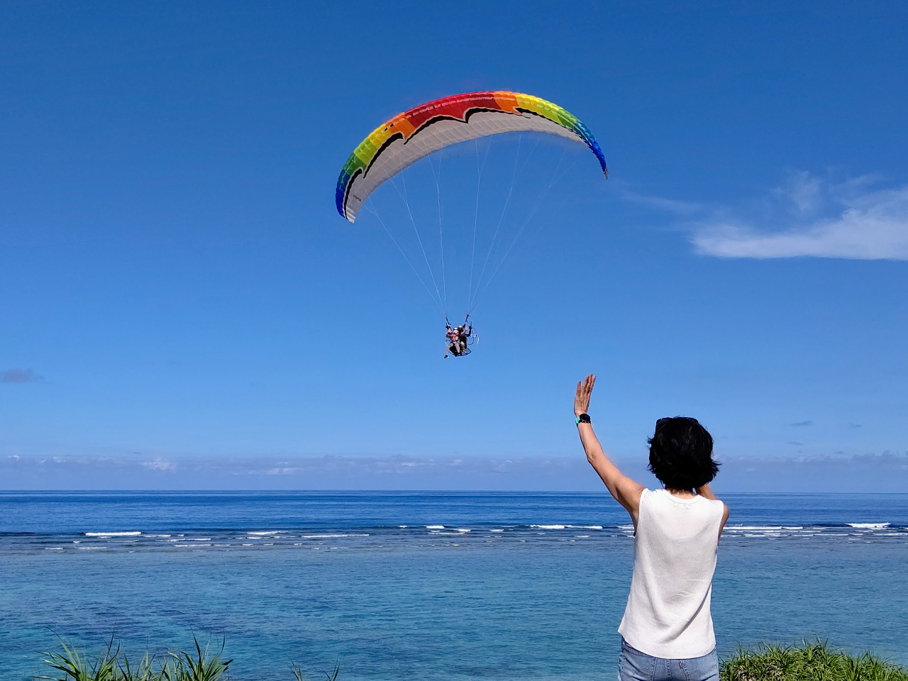 ハッピースカイの二人乗りパラグライダーで奄美の美しい青空とウミガメが泳ぐさんご礁の海上へ飛び立とう!