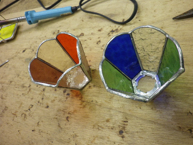 その中からお好みの6枚のガラスを選んでコパテープを巻きハンダ付けをして作ります。