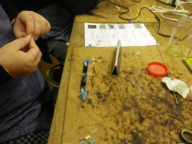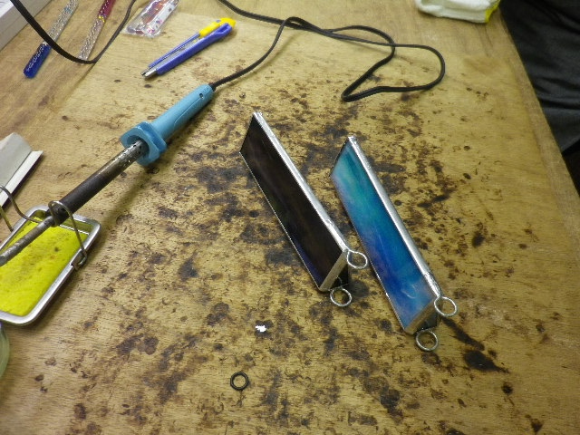 お好きなガラスの色を選んでコパテープを巻きハンダ付けをして作ります。