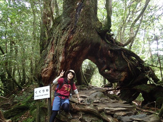 七本杉。上部の枝がいろいろな方向に広がり、森の中で圧倒的な存在感を示しています。 白谷雲水峡内で一番見応えのある屋久杉です。