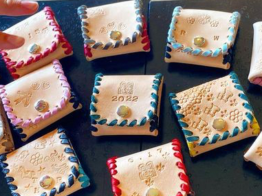体験は、何を作るかを決め、装飾を施して、縫い合わせるという3段階で、どこまで凝った装飾をするかで、所要時間が変わってきます。