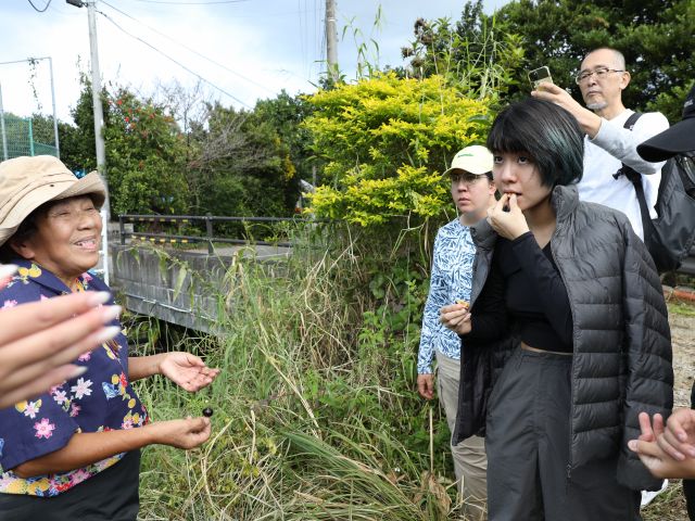 おばあに教えてもらいながらランチの食材となる山野草の摘み取っていこう!