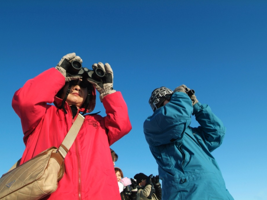 天然記念物のオオワシ・オジロワシを双眼鏡や望遠鏡で観察します。ほとんど歩きませんので、体力の心配もありません。