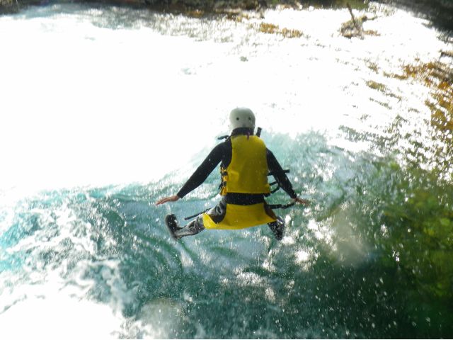 5mを超える岩からは飛び込みジャンプ!水が渦巻く場所ではぐるぐる回ったり…。