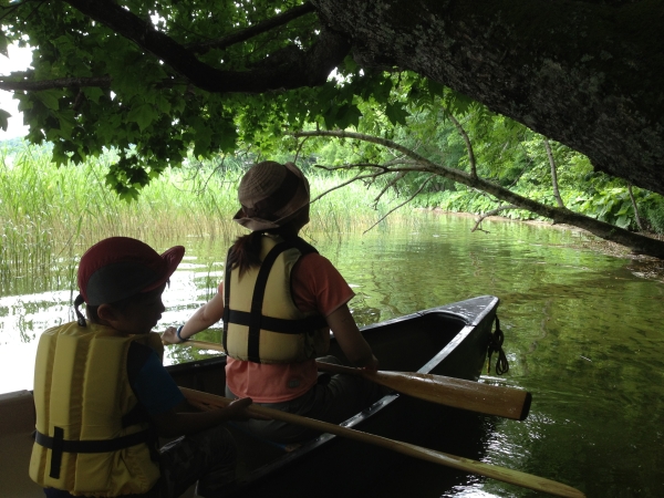 岸辺をゆっくりと進みます。ちょっとしたコツでカヌーは簡単に操ることが出来ます。
