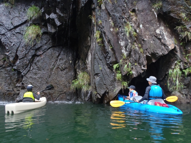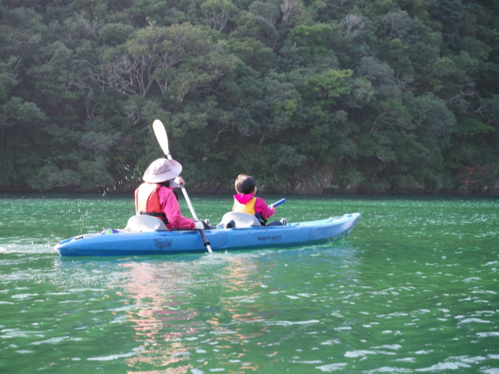 小さいお子様は二人乗りのカヤックに乗っていただけます。