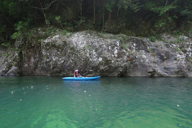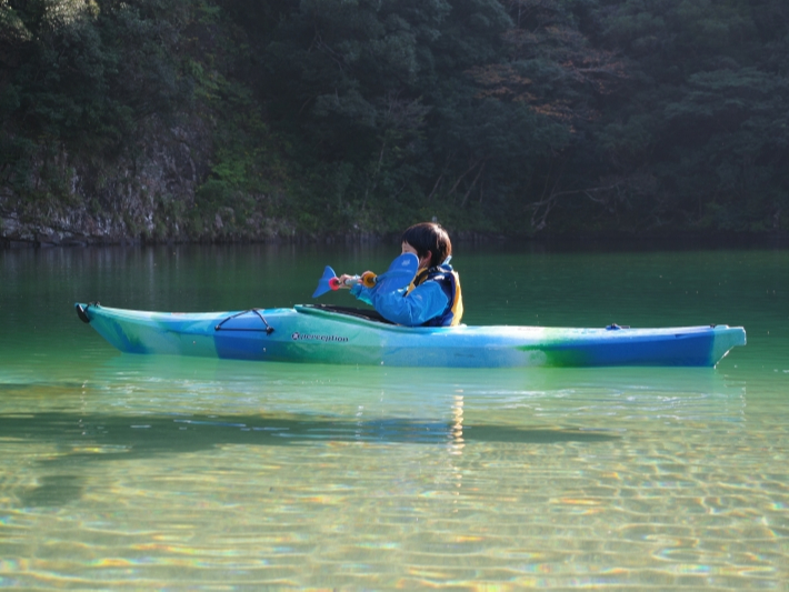 エメラルドグリーンの水面をスイスイ漕いでいるだけで幸せな気分になってきます。