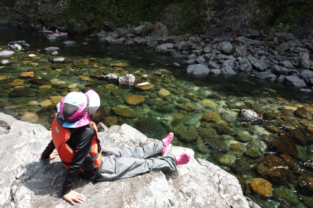 上流まで来たら、可原に降りてフリータイム。泳いだり、休んだり、そろぞれスローな時間を過ごします。