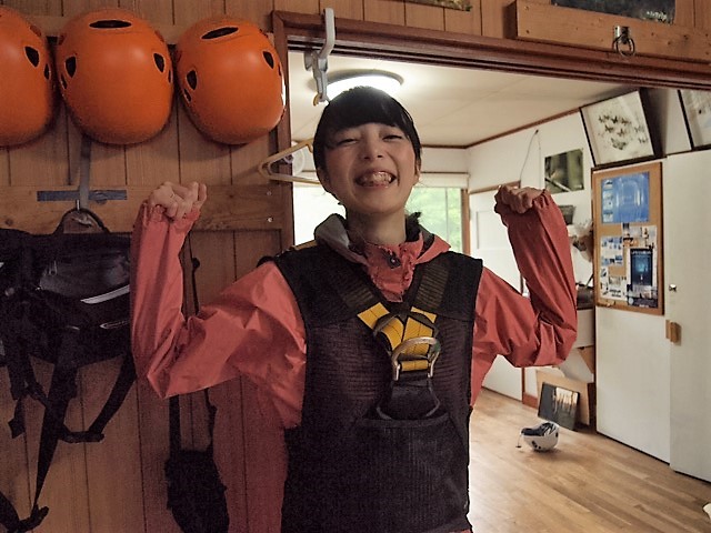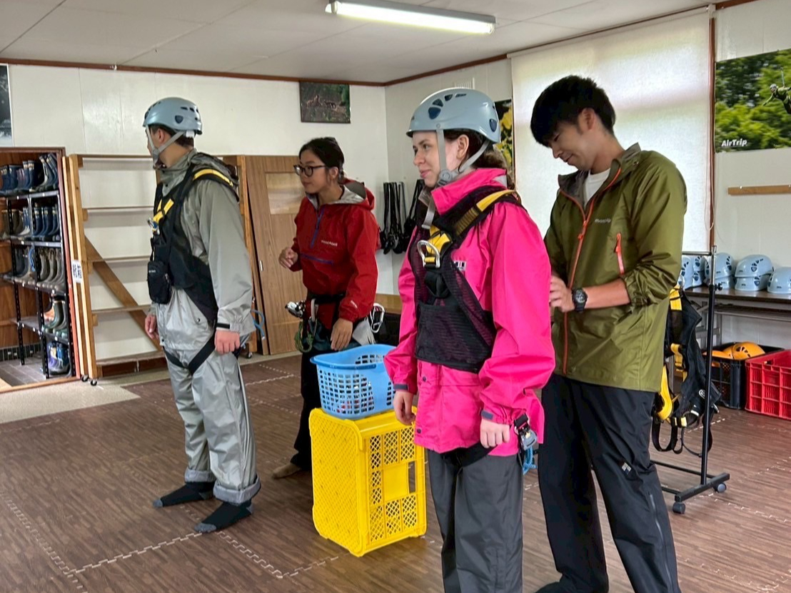 受付を済ませた後、ガイドの指示に従って、専用のハーネスなどを装着します。