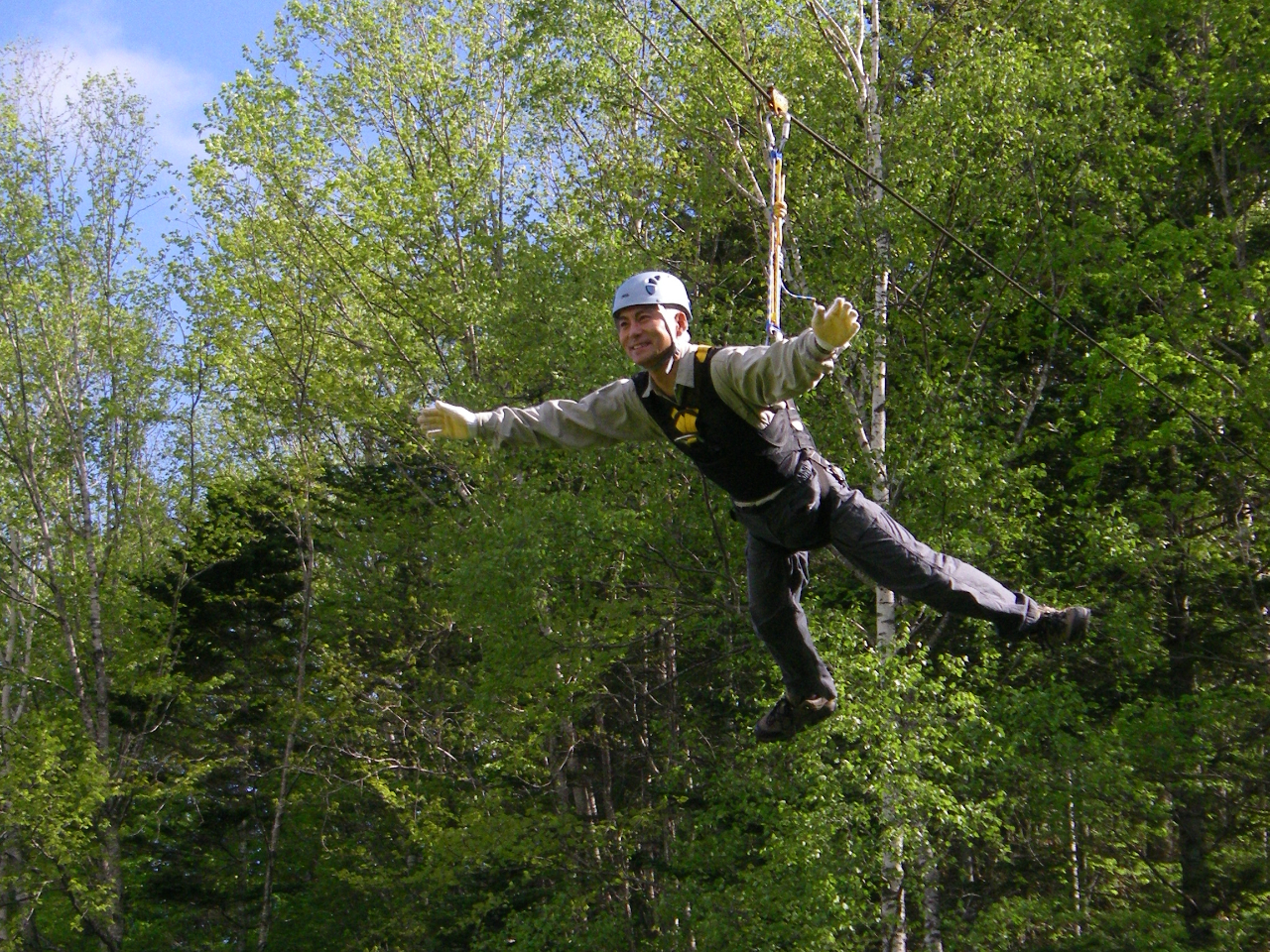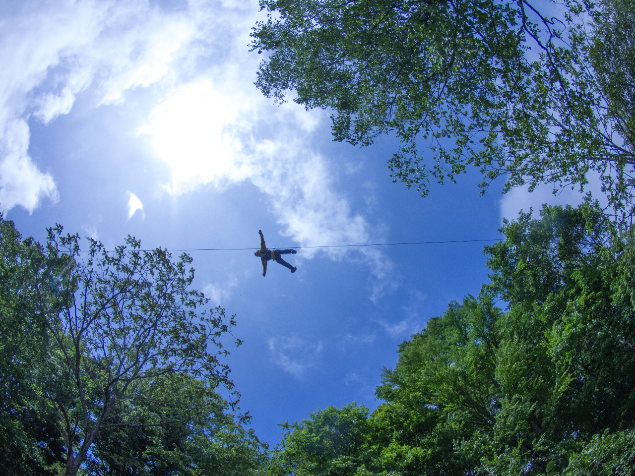 クライミング用のギアを装着し、森や草原に張られたワイヤーケーブルを滑空していきます。難しい技術などはいりません。