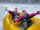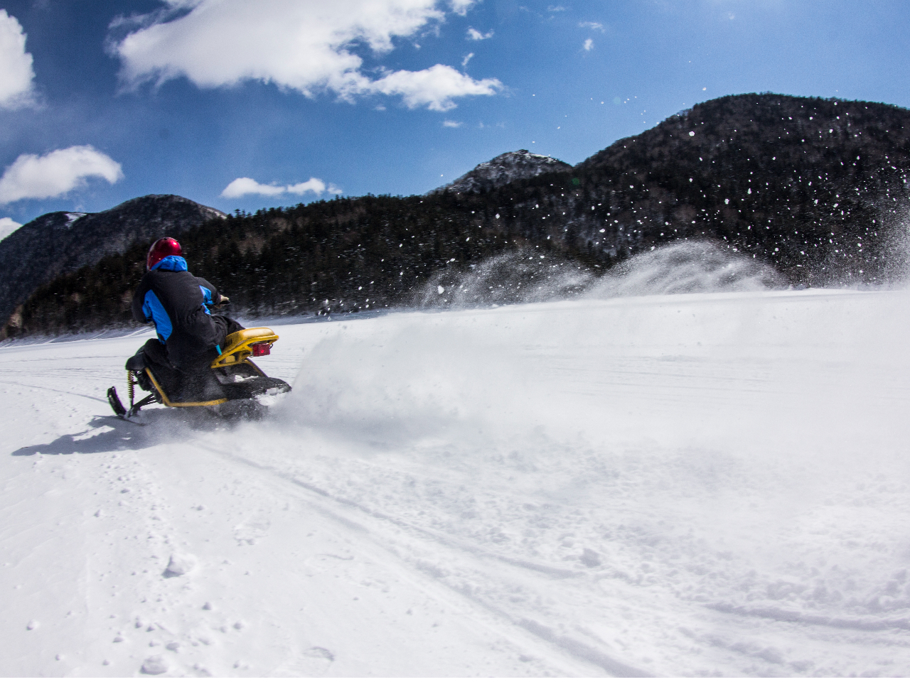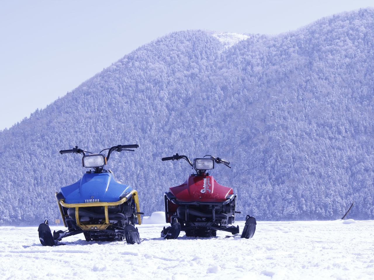 『ラフトボート』に乗って、スノーモービルで引き回します。