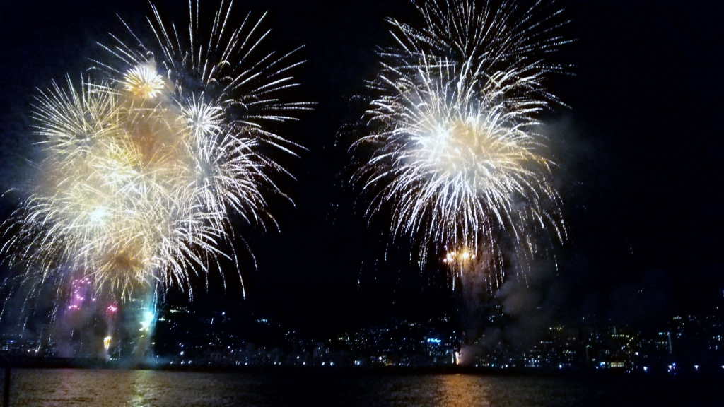 夜空に広がる花火や、水面に映る海上花火大会を海上の船から鑑賞します♪