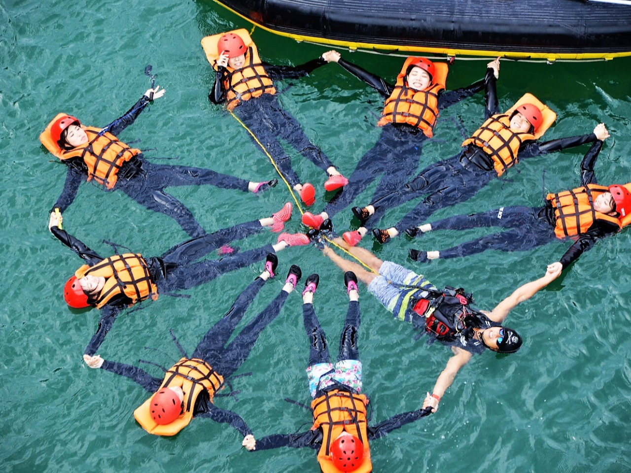球磨川ラフティング ハッピーサプライズは、お客様の笑顔が大好き!そんなスタッフが揃っています。お客様に安全に楽しんで頂くことに力を入れています。写真や動画のクオリティや枚数は業界No.1。楽しんで頂く為に色んなアクティビティをご用意しています。