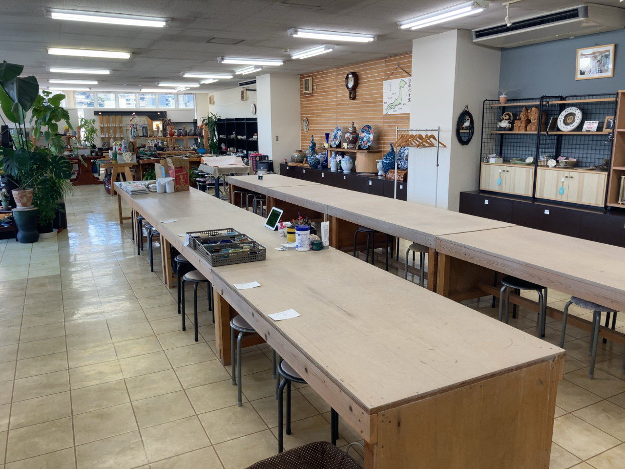 また、広々とした店内で各地の産地の焼き物に触れながら作ることができます。そして時間を気にせず営業時間内ならいられるのでゆっくりと、くつろげます。
