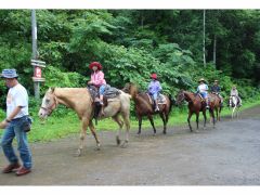 小さなお子様も一緒にご家族で森の中をホーストレッキング!
