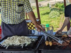 BBQはお腹いっぱいになるほどのマトン、ソーセージ、野菜、うどん、おにぎり、お茶が用意されていて、食べきれずタッパーに入れて持ち帰りました笑 アスパラはもちろんのこと、じゃがいもが甘くて美味しかったですー!
