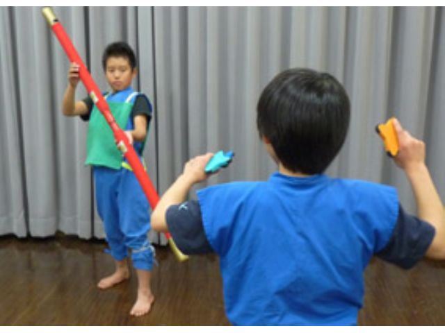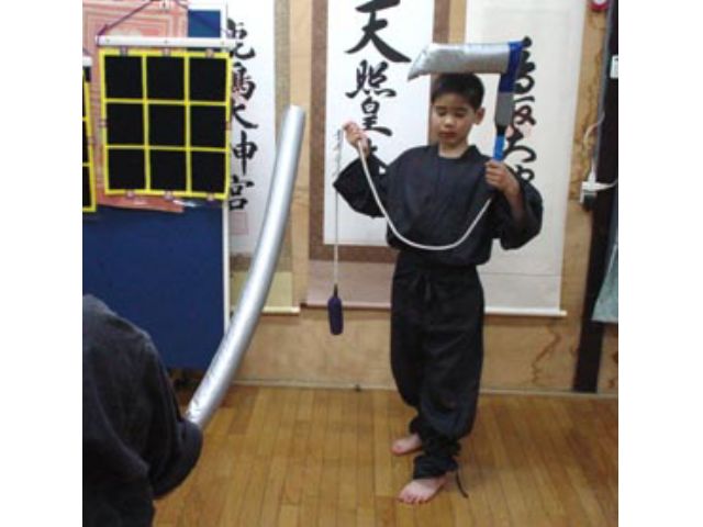 安全な道具を使って、忍者の武器の修行。実際に戦ってみよう!