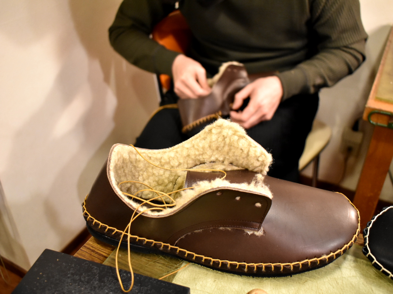 【履き心地◎】あたたかボアの手縫い外履き靴作り体験!オーガニックレザー