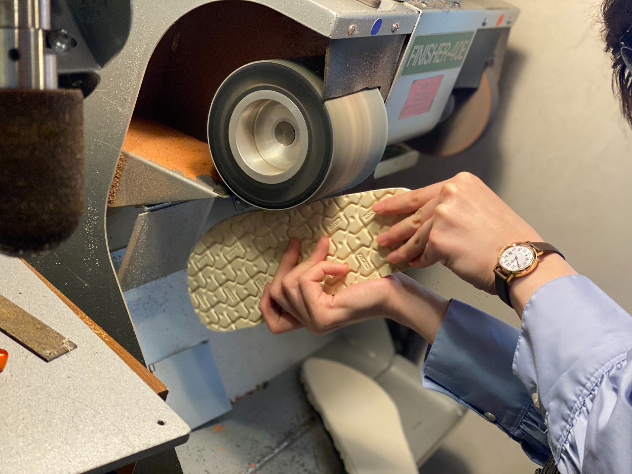 革を組み合わせての接着作業、ソールの削り作業、等を行っていただきます。