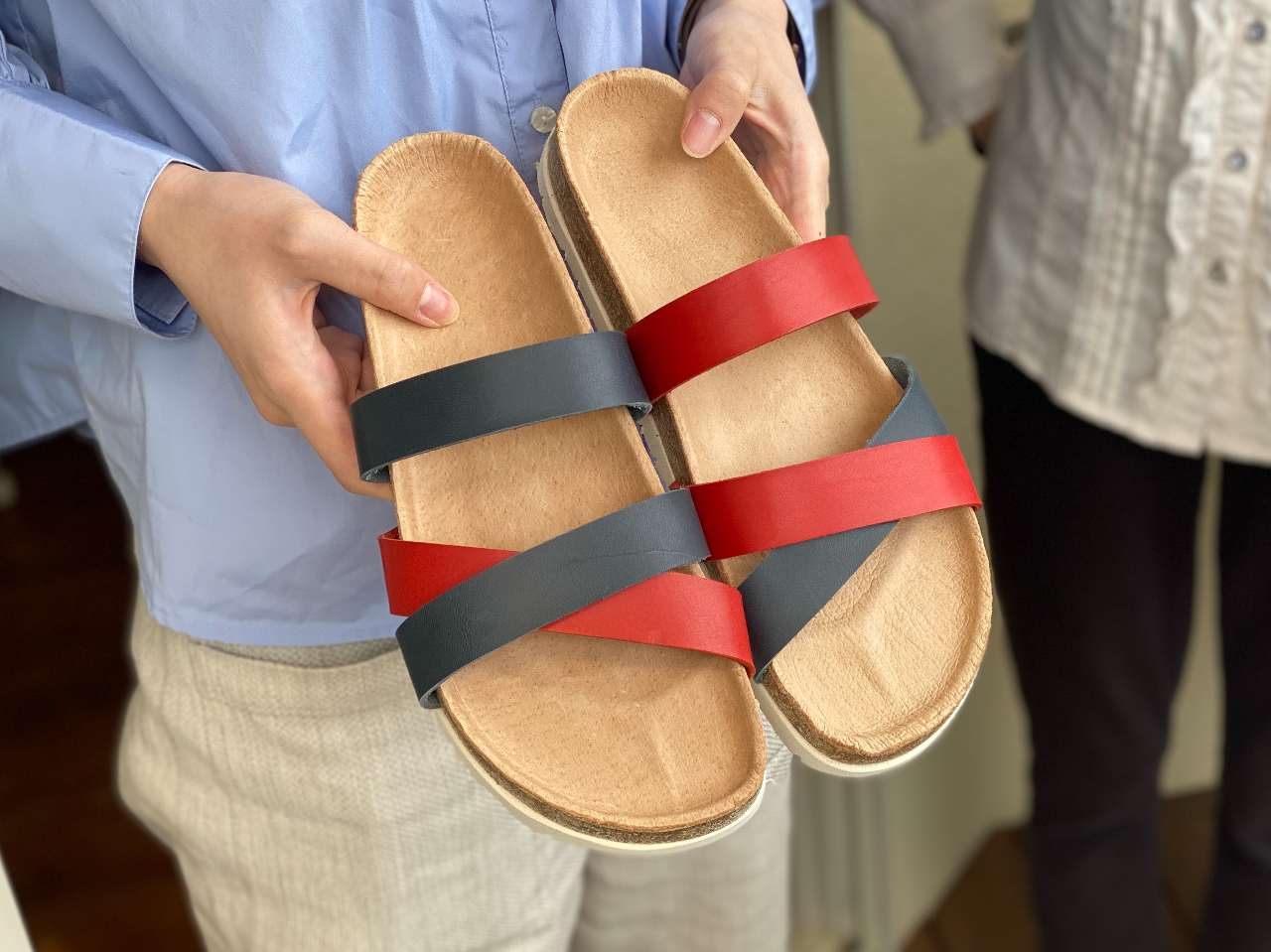 革の組み合わせ自由 サンダル作り体験風景