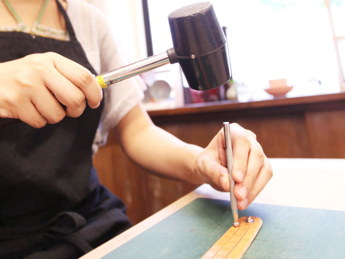 【愛知・名古屋・栄】レザークラフト一日体験☆バングル・キーホルダーを手作りするセンスup体験♪お一人様・女性同士・カップル・ファミリーに