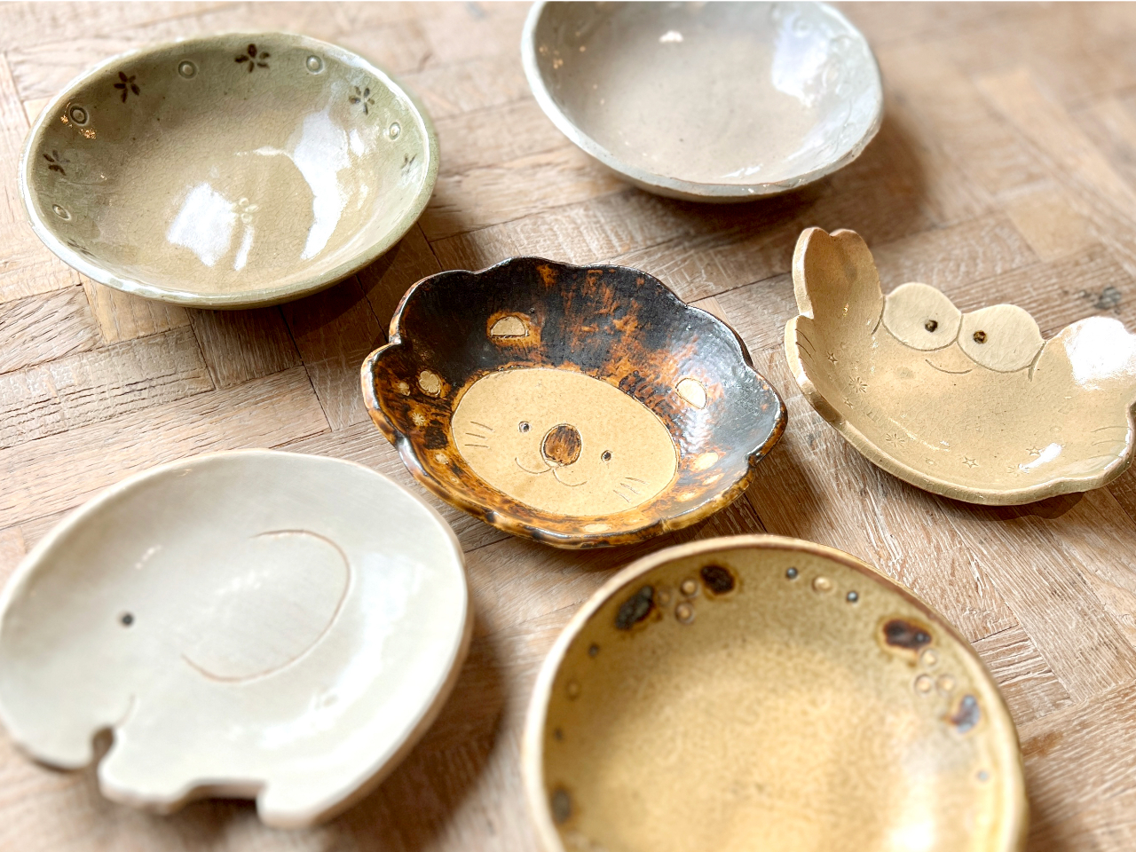 かわいい動物や海の生き物、はにわ、お花など個性あふれる自分だけのオリジナルのお皿を作ります☆