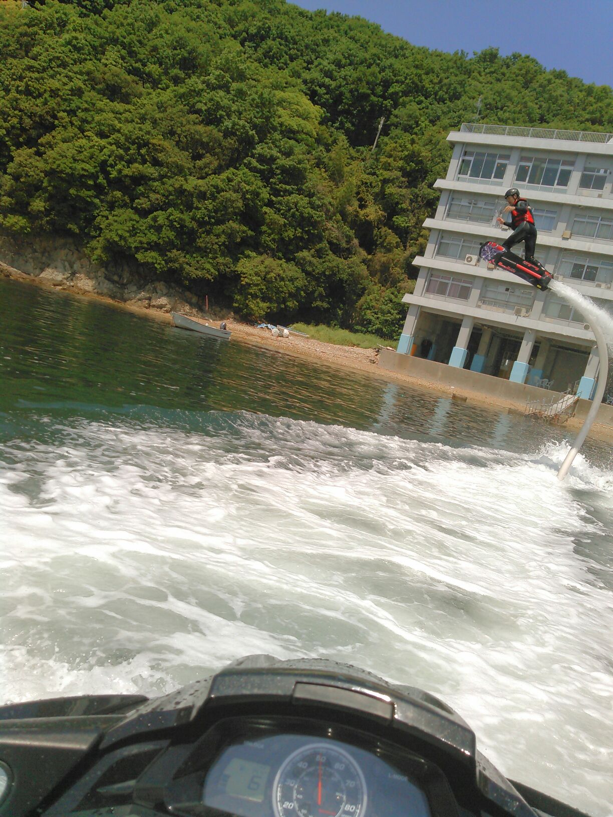 水圧で空を飛んでみませんか♪フライボードは一見難しそうですが、コツさえつかめば初めての方も意外と簡単に楽しめますよ!