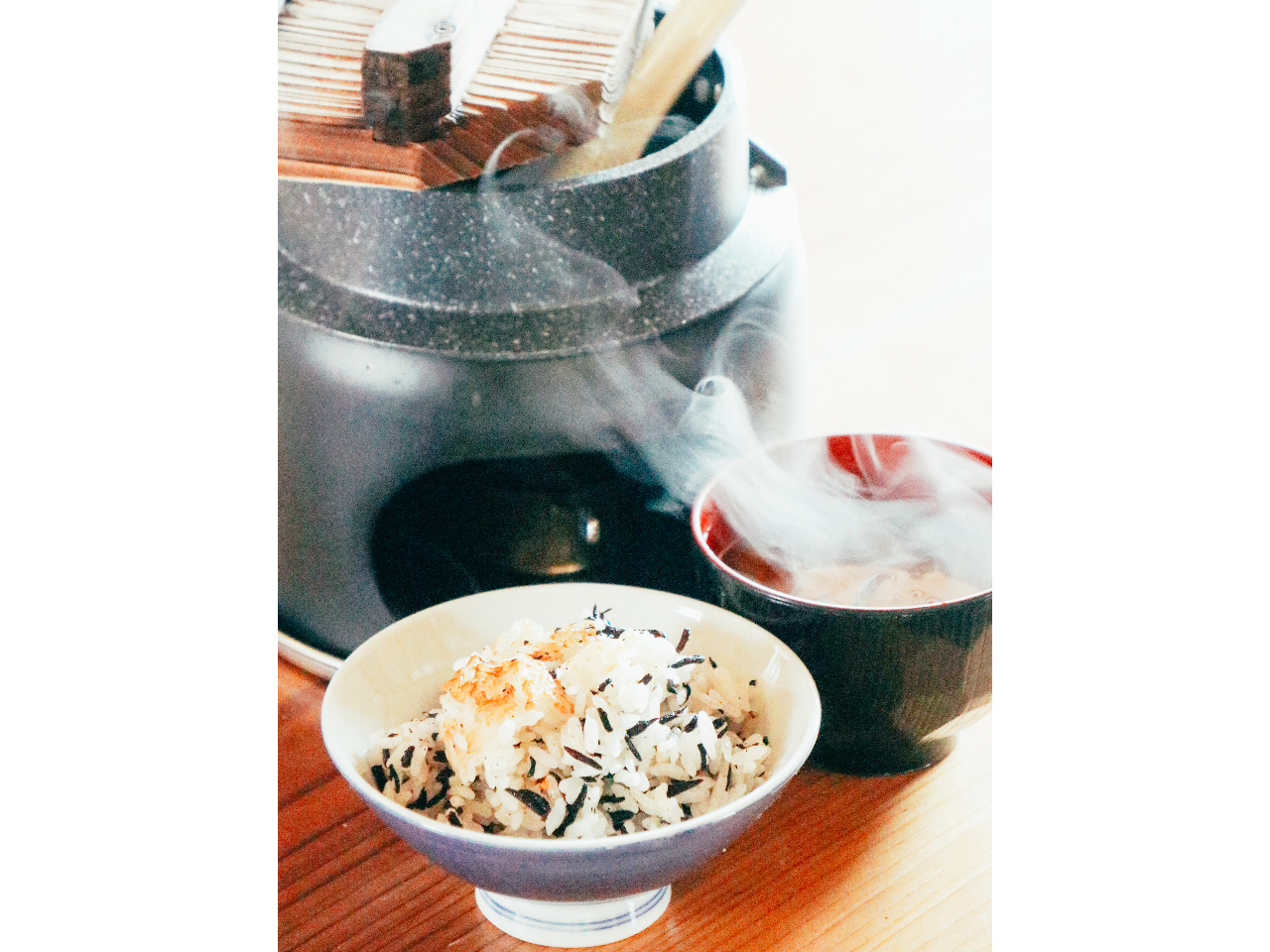 ぷりぷり桧扇貝、採れたてさざえ、新鮮スルメイカ、漁師町の干物、名物青さのお味噌汁、ひじきの釜飯