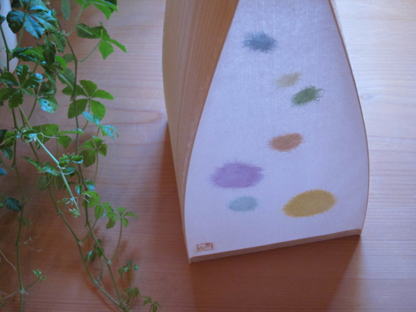 白い和紙の面に草木染め和紙を切り紙等で、アレンジします。