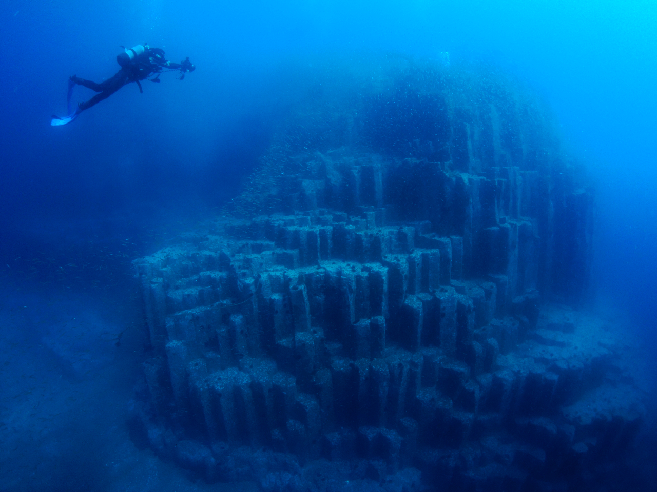 水中での「柱状節理」も人気の地形ポイントです。