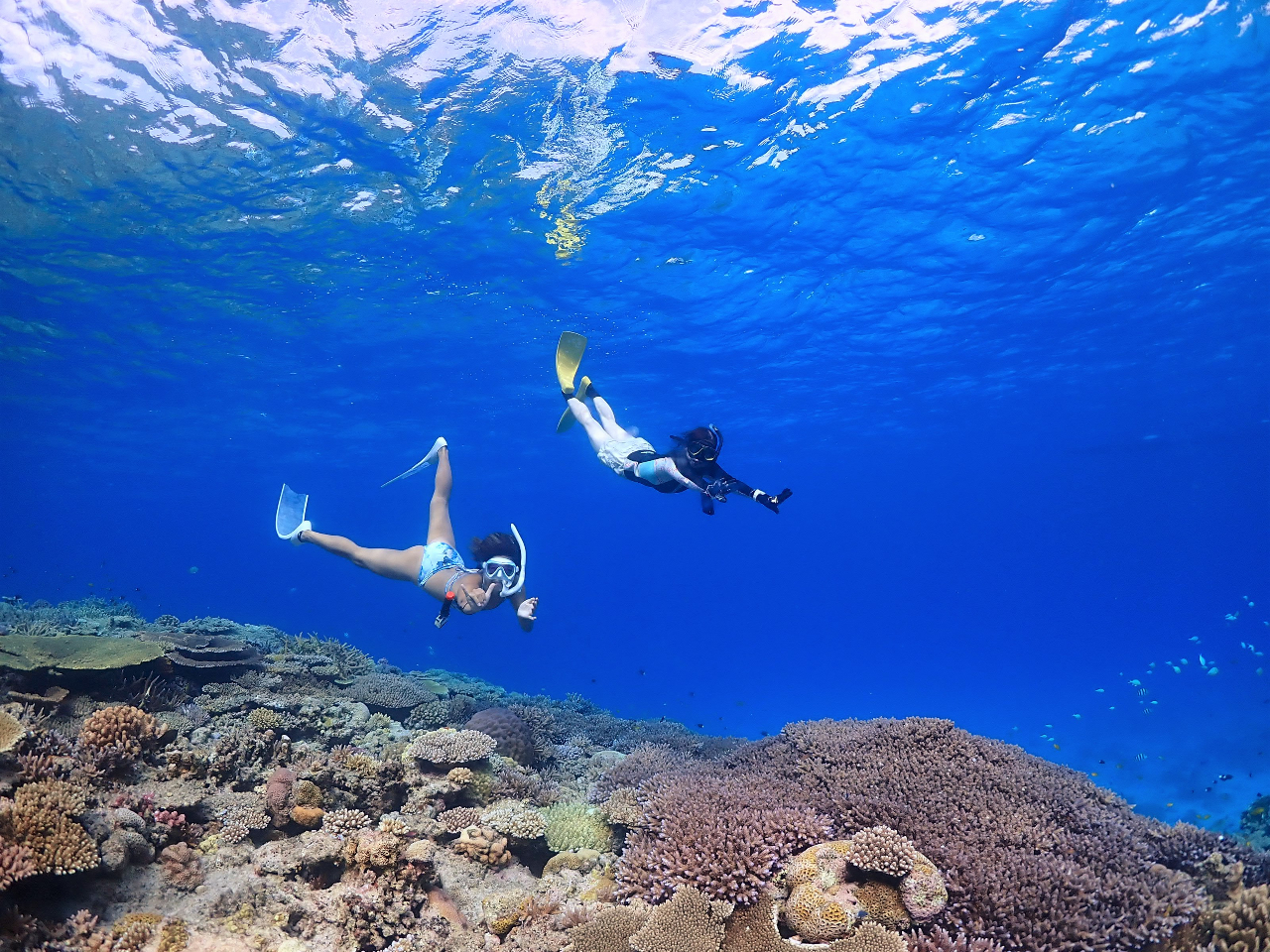 【ボートdeスキンダイビング】水納島・瀬底島のサンゴ礁の海でスタッフ貸し切り案内でゆったり♪