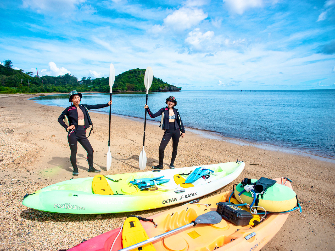 小さなお子様やご年輩の方も気軽に挑戦できるカヤック。ちょっと練習すれば運動が苦手な方でもすぐに楽しむことが出来ますよ。ビーチで練習してからスタートしますので、初めての方でも安心です!