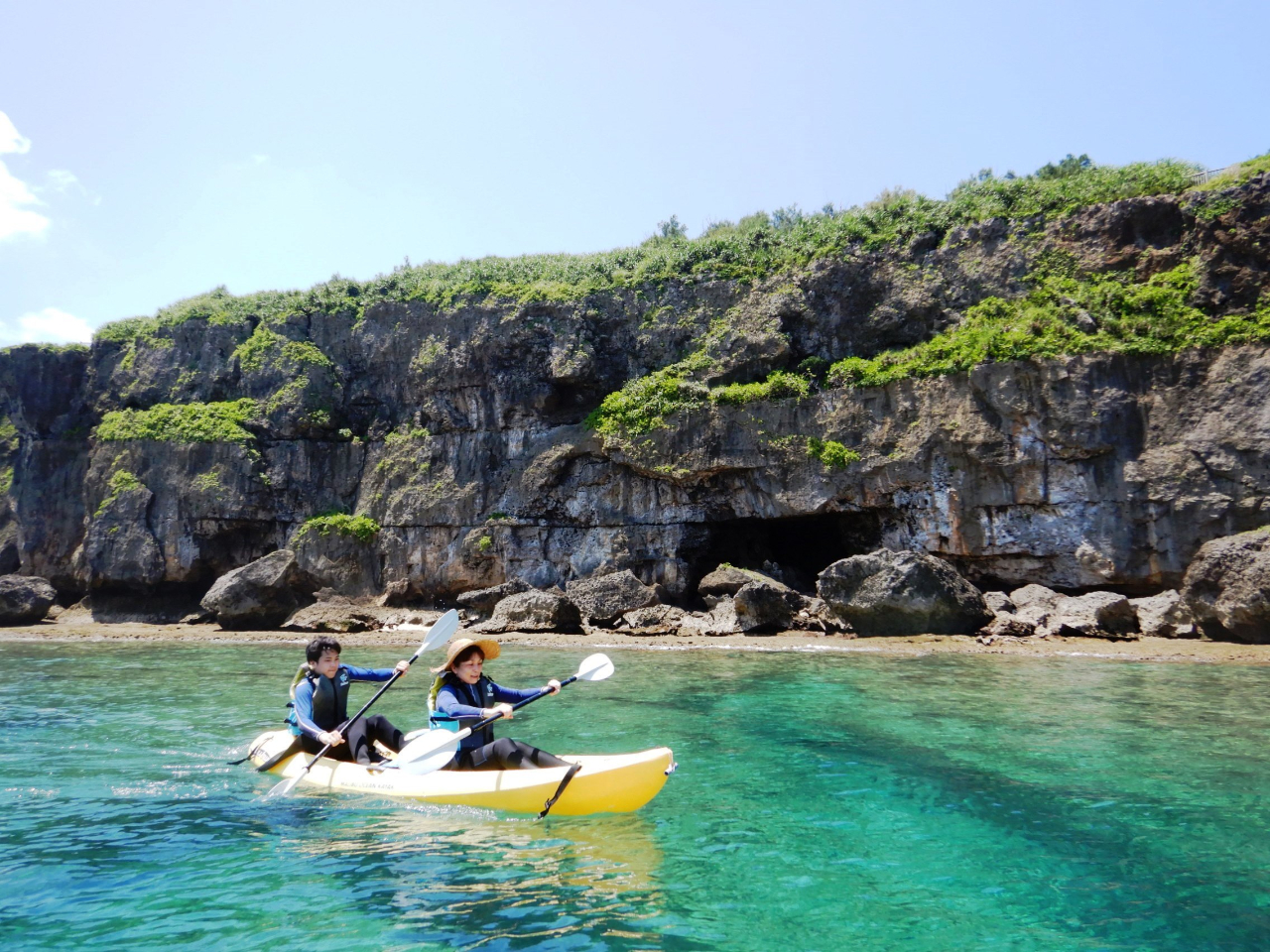断崖絶壁を見上げながらシーカヤックを操縦!年齢問わず楽しめるので、ご家族にオススメのマリンスポーツです☆