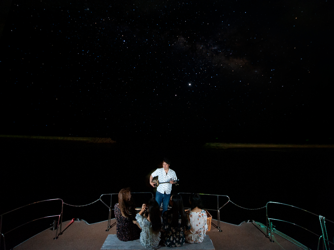 大型クルーザーに乗って石垣島の夜を楽しみませんか?世界トップクラスの星空と石垣島の夜景、そして船上では三線ライブも開催!