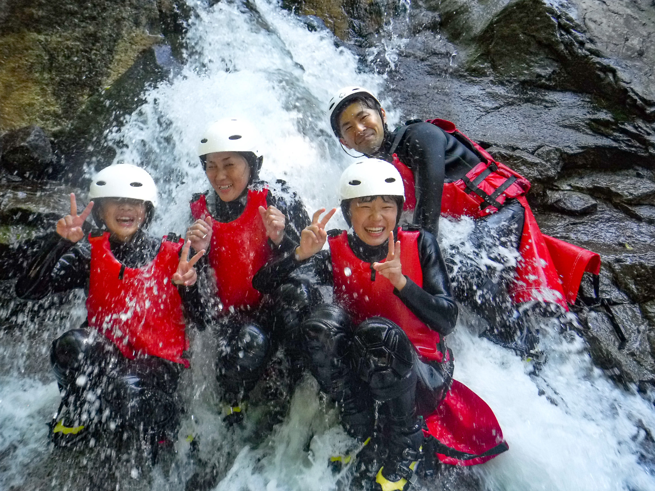 『3回目のキャニオニングをジャグスポーツさんで体験させてもらいました。沢を登るのは初めてで、水の抵抗を受け厳しいところもありましたが、苦労して登った甲斐あって、下りは超ロングスライダーや滝壺落ちなど楽しめました。ガイドさんが丁寧にアドバイスしてくださり、安心して遊べて大満足でした。写真もたくさん撮っていただきありがとうございました。また行きたいです。』