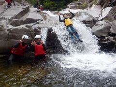 ちょっとした山登りから始まり、滝や飛び込み、沢下りなどいろいろ体験。みんなキャーキャーはしゃぎました(笑)