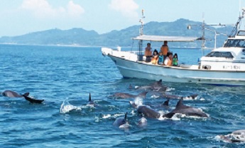 一年中、野生のハンドウイルカが回遊する、熊本県天草市五和町の沖合。