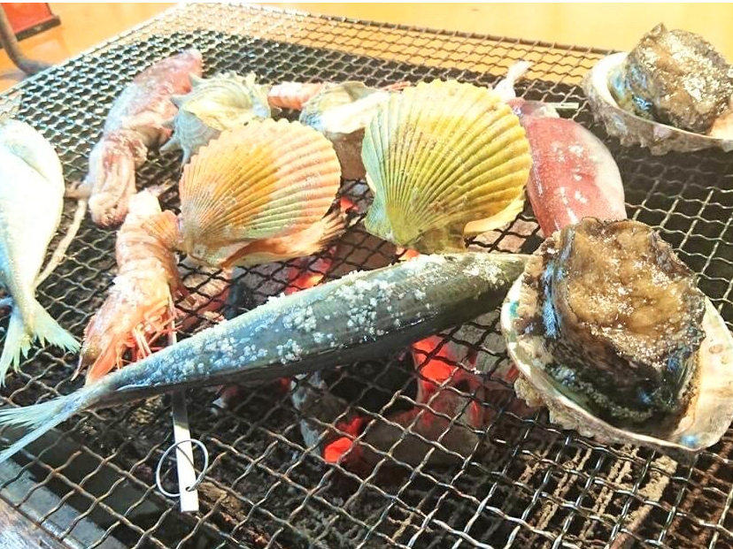 ◆海鮮蔵BBQメニュー:アワビ/さざえ/ヒオギ貝/イカ/お魚/エビ/おにぎり/潮汁