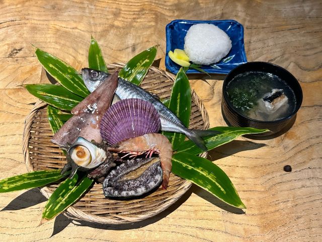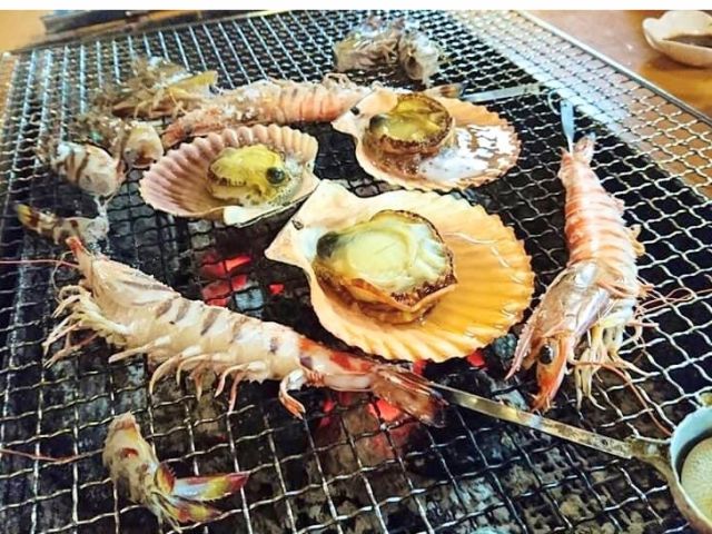 ◆海鮮蔵BBQメニュー:アワビ/さざえ/ヒオギ貝/イカ/お魚/エビ/おにぎり/潮汁