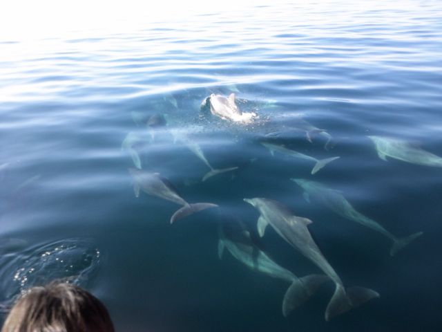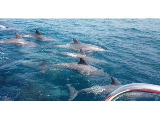 漁船に乗って10分も走ると【3群約300頭前後】のハンドウイルカの群れと遭遇。