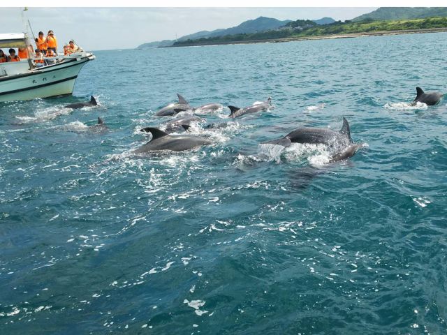 日本付近では稀と言われる「根付きのイルカ」として通詞島周辺を中心に生息しています。周辺の海を知り尽くしたベテラン船長操船でのイルカウォッチングは、イルカとの【遭遇率99.9%】です。