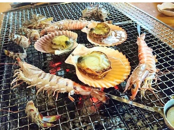 ◆海鮮蔵BBQメニュー:さざえ/ヒオギ貝/イカ/お魚/エビ/おにぎり/潮汁